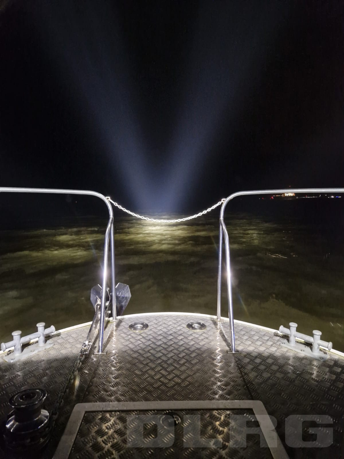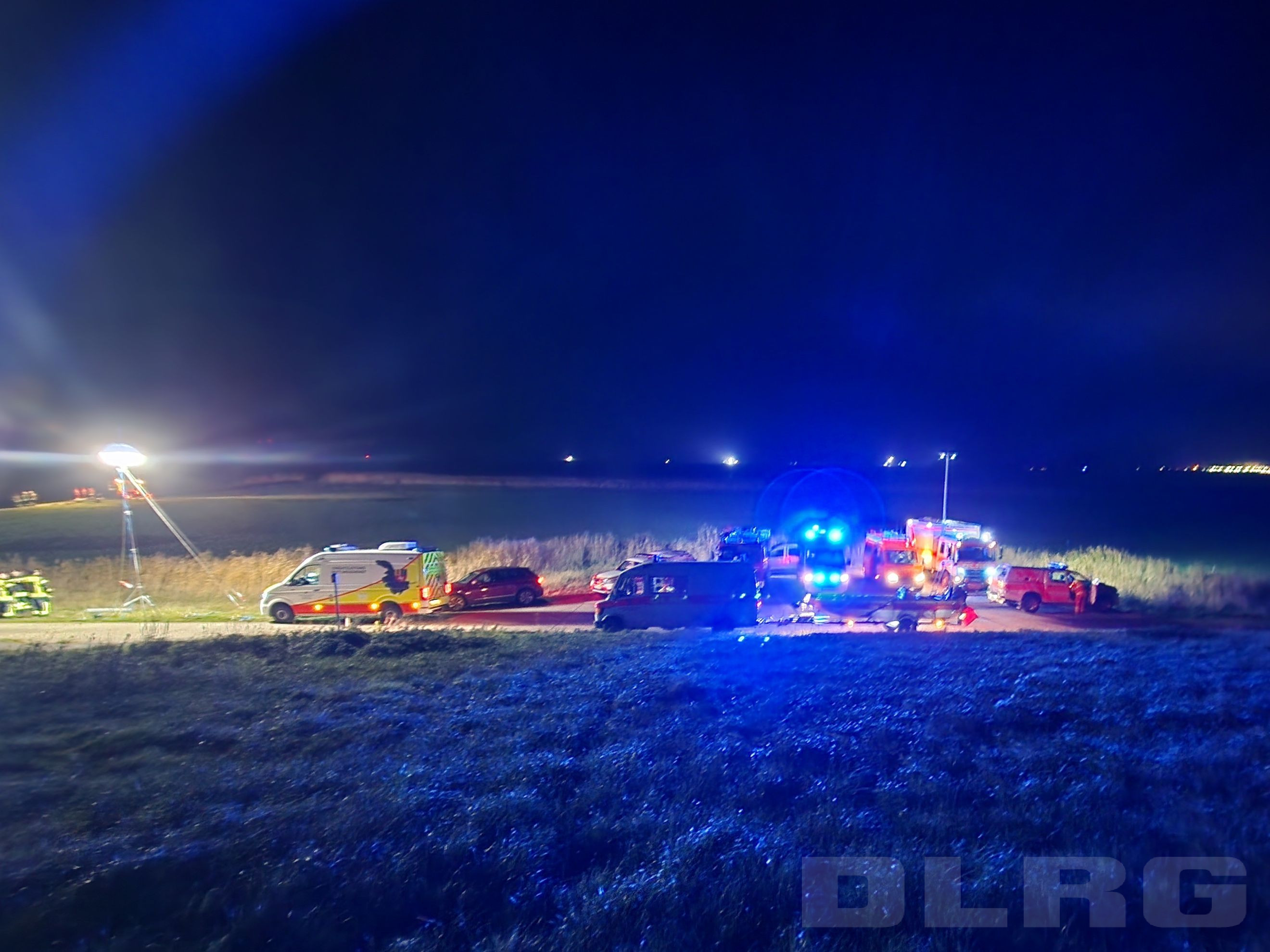 Alarmierung durch Leitstelle West. Eine Person wurde im Wasser mehrfach gesichtet. "Licht im Wasser"